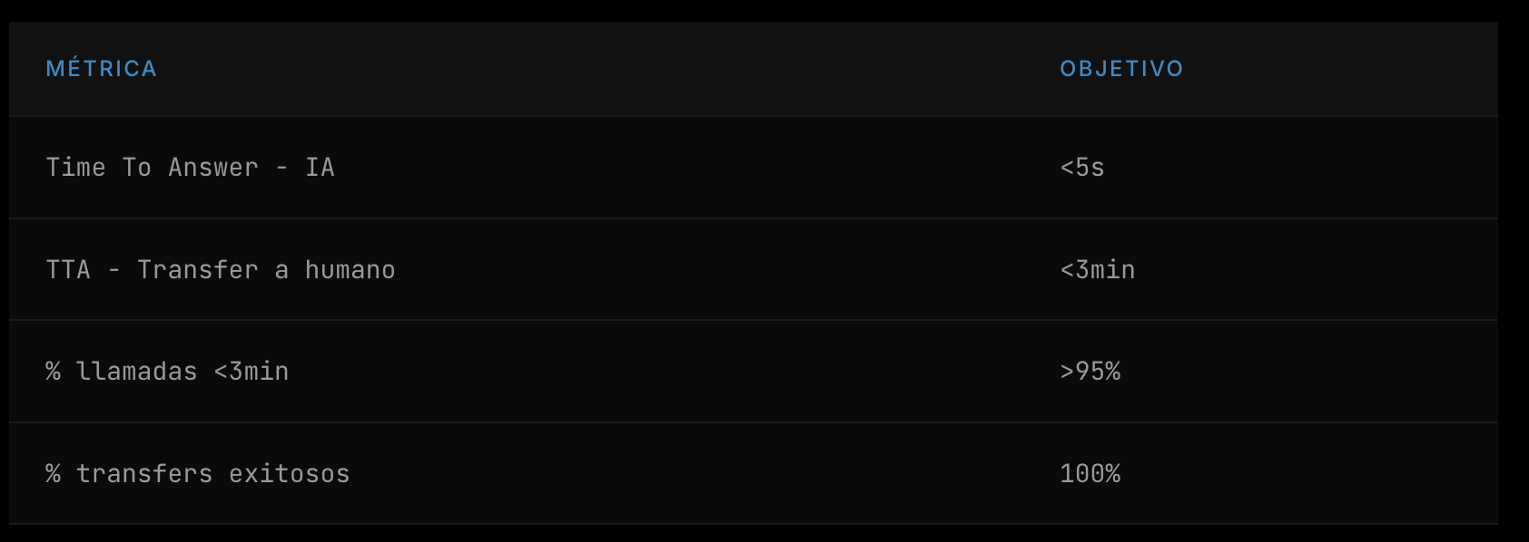 🔹 SLA de atención: menos de 3 minutos en 95% de llamadas