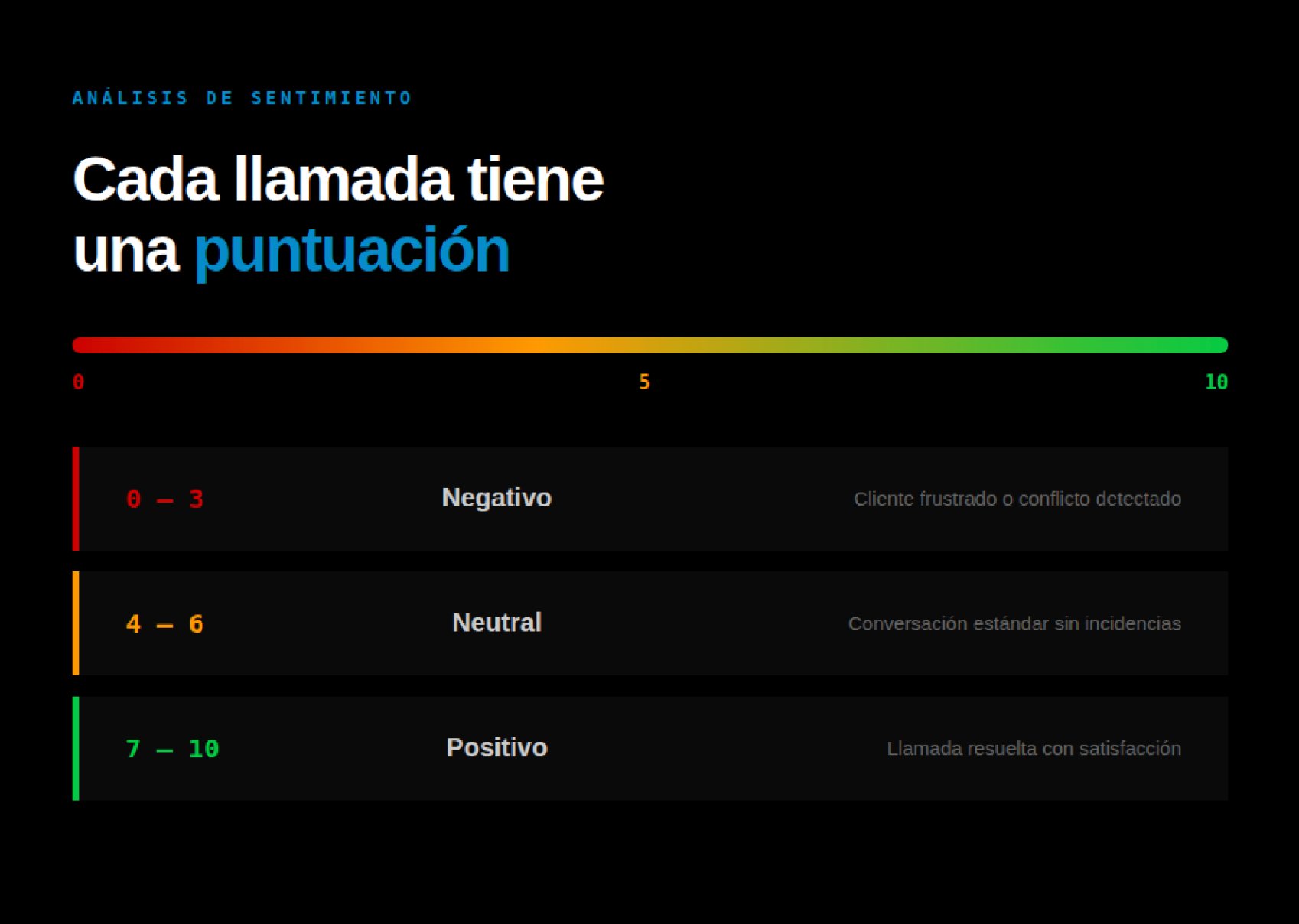 El análisis de sentimiento evalúa automáticamente cada conversación y le asigna una puntuación de 0 a 10.